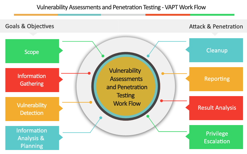 VAPT stands for Vulnerability Assessment and Penetration Testing. It is a comprehensive security testing methodology that helps organizations to identify and address potential security vulnerabilities in their IT infrastructure and applications. Vulnerability Assessment (VA) involves analyzing systems, applications, and networks to identify potential security weaknesses, such as misconfigurations, software vulnerabilities, or access control issues. VA